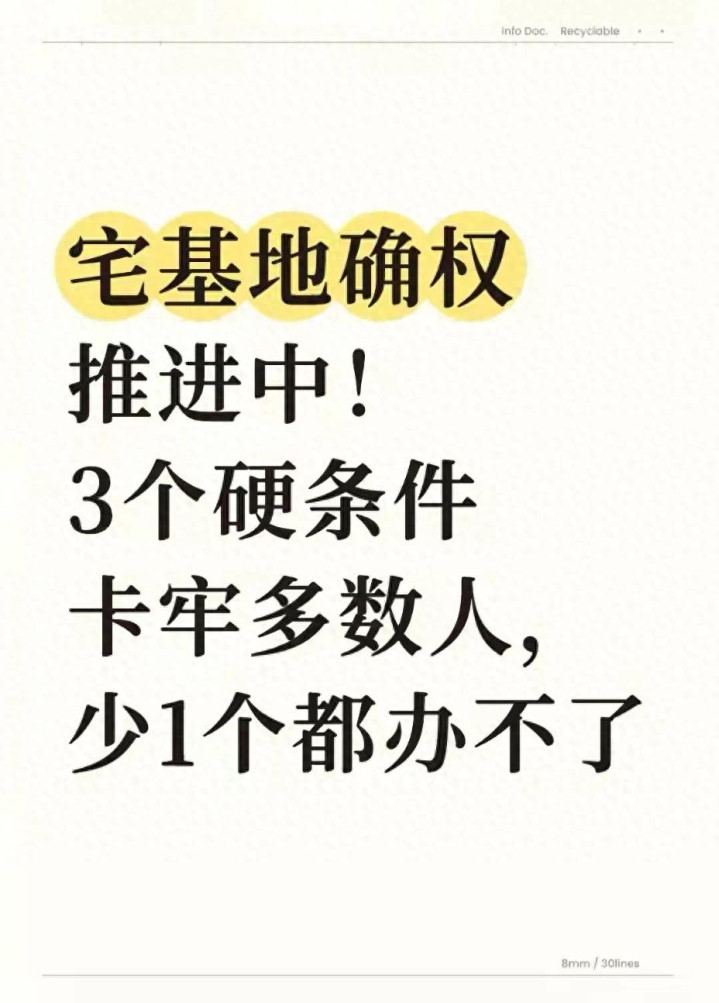 农村不动产统一登记工作的持续推进,让宅基地确权成了农民朋友最关心的事。不少农户觉得“父亲的宅基地传给儿子是天经地义,签个字就能办”,可真到实际办理时,却屡屡被驳回。其实宅基地确权不是“走个过场”,根据《土地管理法》《民法典》及最新政策要求,想要顺利完成确权登记,有3个核心硬条件必须满足,少一个都过不了审批。今天就用大白话把这些关键要求、实操要点讲清楚,帮大家守住这份“根上的权益”。